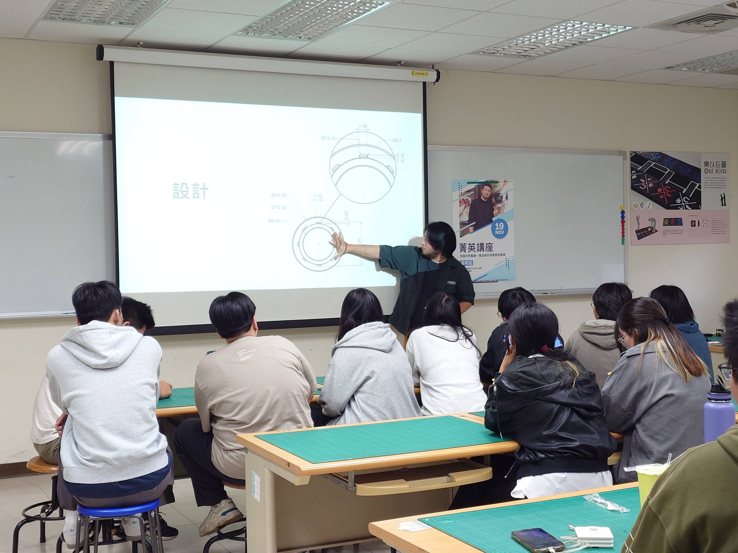 ►南華大學舉辦設計菁英講座,邀請曲面實業有限公司侯明延設計工程師主講,與學生分享產品設計與量產流程。
