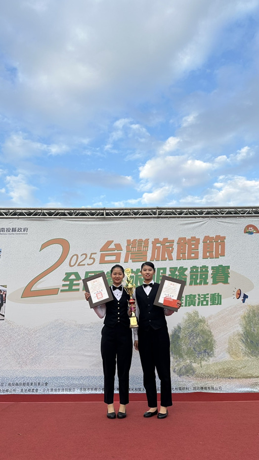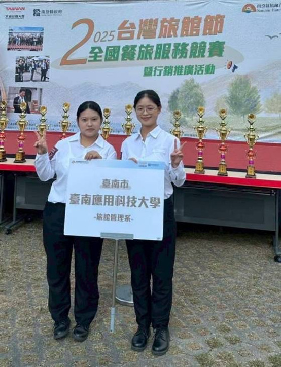 2025年「臺灣旅館節全國旅館盃餐旅服務競賽」於昨(4)日假日月潭瑞居渡假飯店盛大舉行,全國各大專院校皆派出菁英選手同場競技。台南應用科技大學旅館管理系在此次全國賽事中再創佳績,不僅於大專院校托盤競賽組勇奪冠軍,完成二連霸的亮眼成就,更在大專院校整床競賽組中脫穎而出,榮獲全國佳作,展現南應大優質的專業訓練成果。