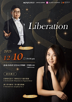 嘉義大學交響樂團12月10日(三)晚間7時30分在嘉義市政府文化局音樂廳舉行年度定期音樂會,以《LIBERATION》(自由)為題,獻上二十世紀經典巨作,並同時緬懷蘇聯音樂大師蕭士塔高維契逝世50週年。