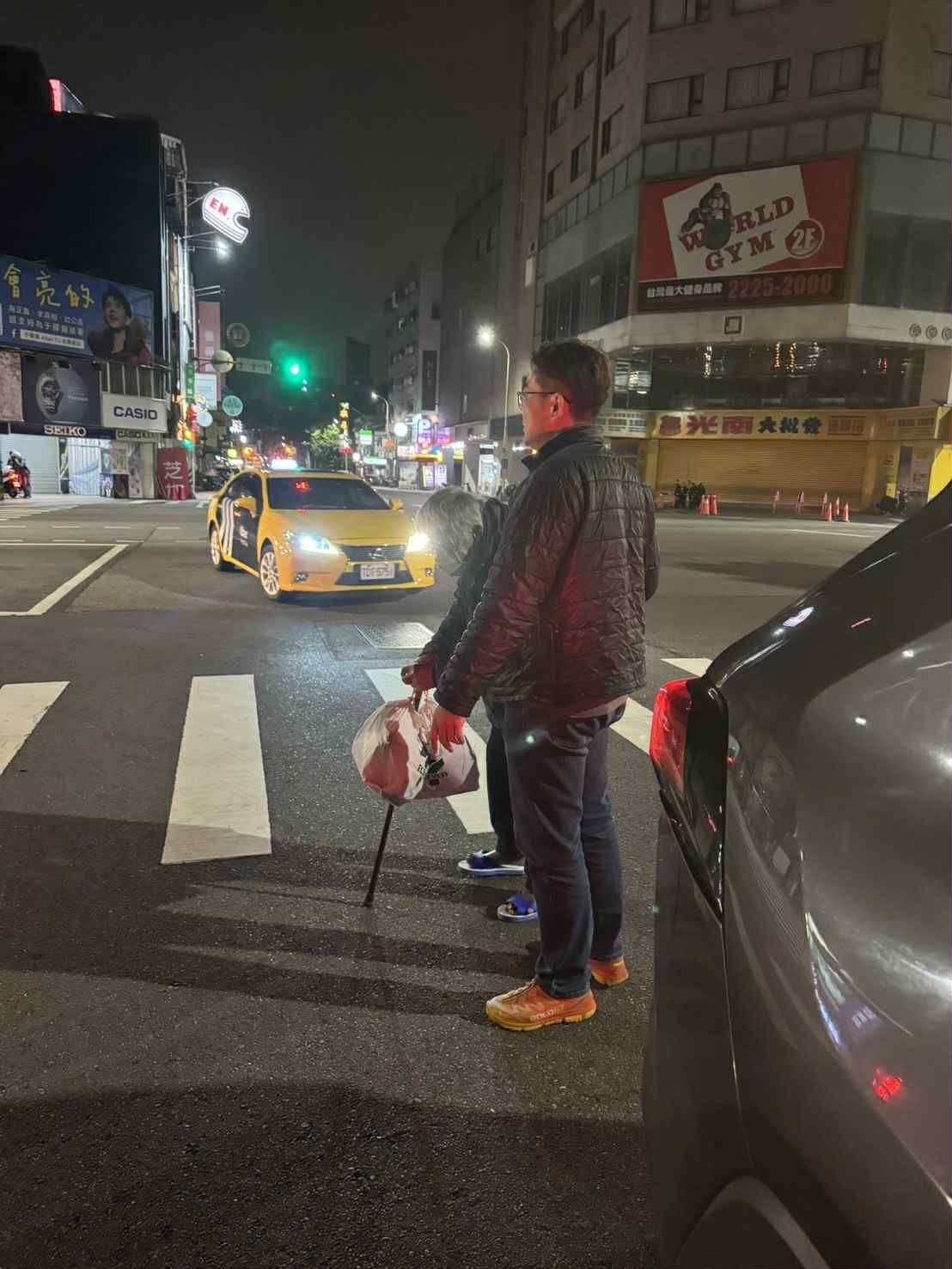 當時路口車流雖不若白日繁忙,仍有來車呼嘯而過,老翁拄著拐杖,拐杖上還掛著兩袋沉重物品,顯得進退維谷。多名路人與駕駛目睹此景,卻因深夜寒冷或一時不知如何協助,只能在旁觀望。正巧行經該路口的烏日分局偵查隊隊長林宏霖,憑藉多年刑警的敏銳觀察,第一時間察覺老翁處境危急,隨即將車輛停靠路邊,快步上前關懷協助。目擊民眾表示,林隊長未有絲毫官威,而是以輕聲細語安撫老翁情緒,穩穩攙扶其穿越馬路,將人安全帶至路旁。