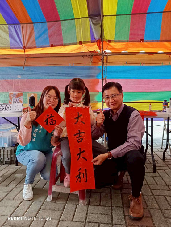 區長張介軍表示,農曆新年是臺灣極具意義的傳統節日,透過新春揮毫活動,不僅讓民眾親身體驗書法之美,也藉由春聯傳遞新年祝福與正能量,期盼大家在新的一年裡都能平安如意、闔家歡樂。