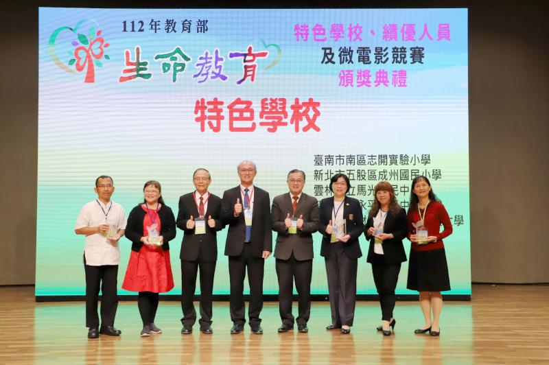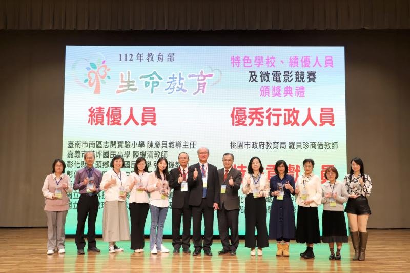 教育部為表揚推動生命教育工作表現具特色之公私立各級學校、績優人員及優勝生命教育微電影,逐步將生命教育從校園推展至社會各角落,於11月20日辦理「112年教育部生命教育特色學校、績優人員及微電影競賽頒獎典禮」。該活動由承辦教育部生命教育中心的南華大學所辦理,教育部常務次長林騰蛟、教育部學特司司長吳林輝、學生輔導科科長楊奕愔及專業助理何依娜特別撥冗出席盛會。