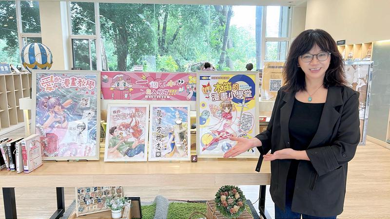 公園總館「閱讀時光機」多元閱讀系列【一個不小心又入坑了】主題9月份書展,其實「入坑」這個網路流行語,就是心甘情願地投入、專注於某個興趣或愛好之中!像是喜歡上某位明星、某部動漫,或甚至是迷上圖書館的活動~都是很常見的「入坑」行為!而「推坑」,就是把你喜歡的東西,分享給更多人知道,希望一起愛上它!配合書展活動,館方還規劃了漫畫課程,邀請《木笛的漫畫小學堂》書的作者台南應用科技大學漫畫系徐碧娟老師(筆名/木笛)〉做現場漫畫教學與民眾同樂,在書展的場地也增加畫展的規模,算是一個別於以往的嚐試。