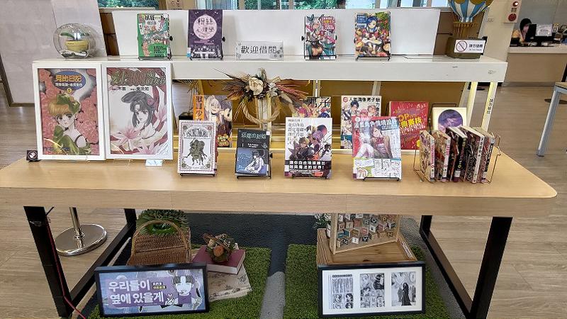 公園總圖今年的9月份書展主題,就是要來「推坑」大家一起來閱讀。其中有台南應用科技大學漫畫系徐碧娟老師所創作的《木笛的漫畫小學堂:畫美少女的16個必學祕技》《龍潭方物志》《我的酸菜可不可以加點糖》《酸菜的滋味》《愛的漫畫教學》《貝比日記:青春軌跡.成長告白》等漫畫書,徐碧娟老師也提供的精美畫作,漫畫教學、漫畫畫展與漫畫書展三合一的活動規劃,讓展場看起來更豐富。