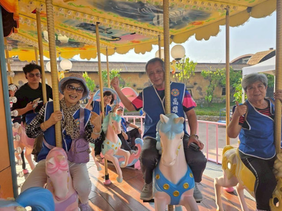 ►高雄榮家長輩開心地乘坐旋轉木馬,回味兒時快樂時光
