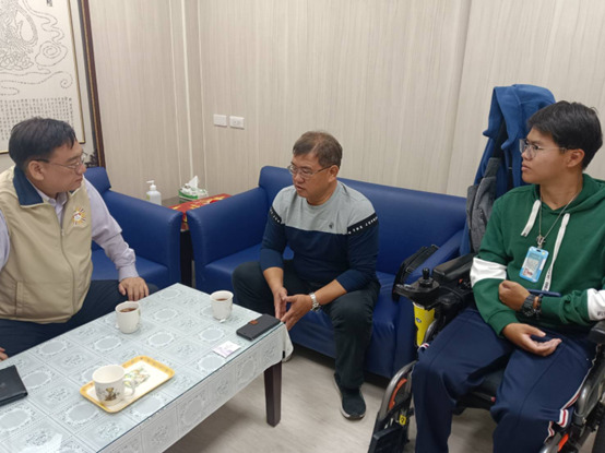 高雄市榮服處劉雅魁處長年節前探視因公受傷、展現堅毅鬥志的「鋼鐵傘兵」秦良丰及其父親。劉處長除關心良丰生活與工作狀況,更鼓勵他繼續進修報考研究所,透過教育訓練,可以分享從全癱中奮起、積極投入復健與習的勵志經驗,鼓勵退除役官兵與社會青年效法其精神,活出精彩的第二人生。