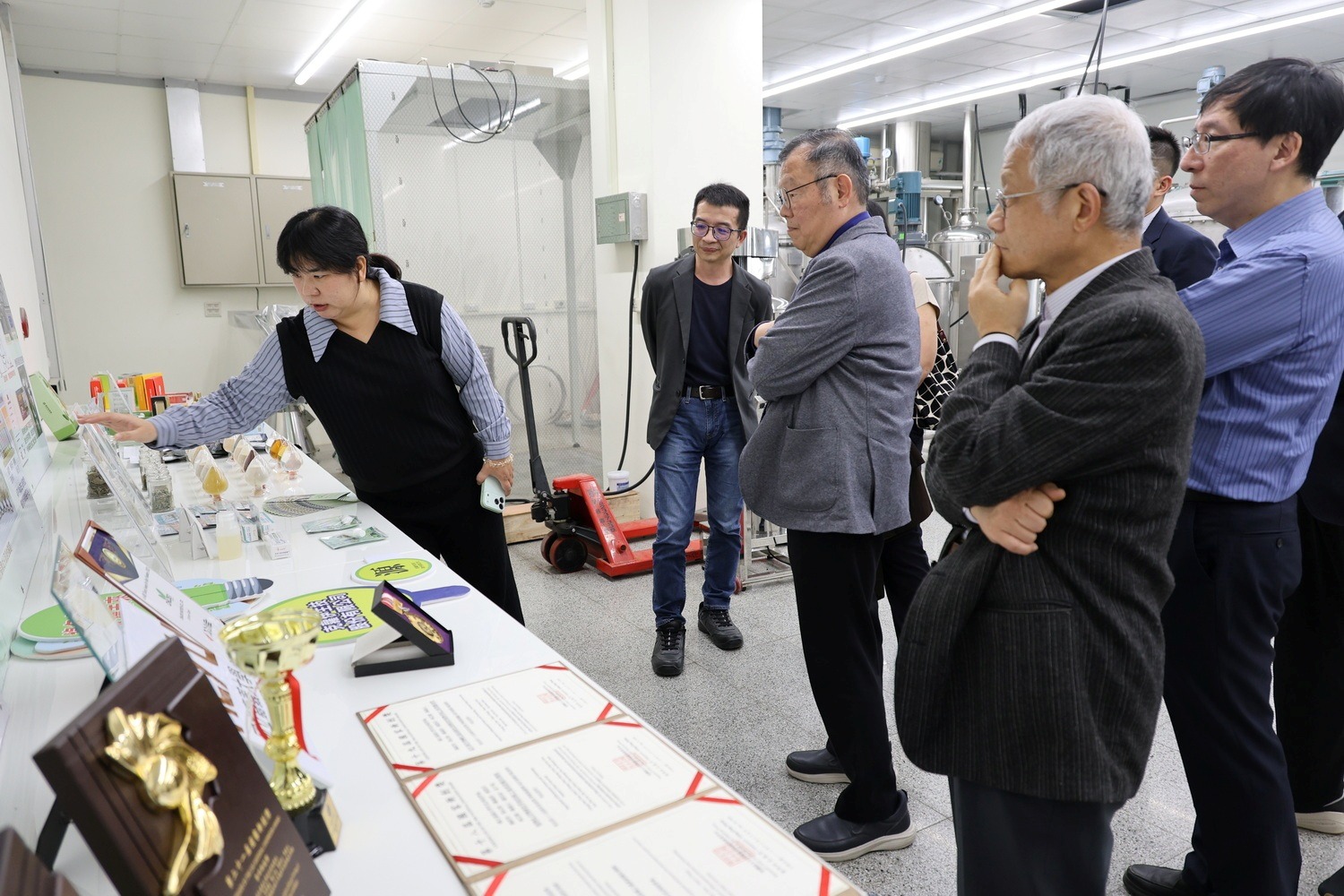 ►陽明交通大學醫學院團隊參觀嘉大中草藥萃取工廠。