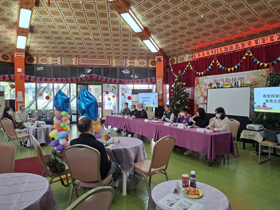 家屬座談會中,各組室依序進行宣導與業務報告,內容涵蓋防災、老人保護、性別平權等宣導,播放長輩們在榮家的活動影片,讓家屬了解長輩在榮家的日常照護情形。會中也安排長官與家屬意見交流時間,家屬針對零用金使用提出建議,長官與團隊亦逐一回應,現場討論氣氛開放、理性且具建設性,共同為長輩打造更優質的居住環境。