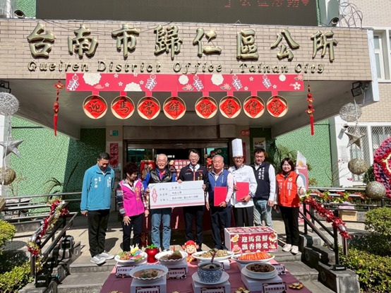 歸仁區公所年菜致贈活動已邁入第4年,由在地總舖師阿泰師以專業回饋鄉里,讓弱勢家庭能在年節期間享有一頓溫暖又豐盛的圍爐佳餚。同場活動還有在地企業共同響應公益,「東憲工程企業股份有限公司董事長鄭憲堂」及「善化工業股份有限公司董事長張鈴宏」加碼提供紅包各40份,另外,歸仁區行善團團員建瑋玩具工業股份有限公司黃順記董事長肯定行善團常年對轄內居民的照顧,當場捐贈30萬元予行善團,除讓受贈家庭在寒冬中感受到社會的溫情與關懷,也展現企業「取之社會、用之社會」的責任與愛心。