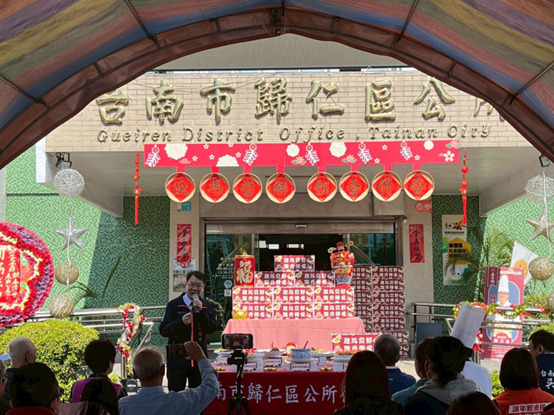 農曆春節將至,為讓弱勢家庭也能感受年節團圓的溫馨氛圍,台南市歸仁區公所於今(11)日上午10時,在公所前廣場辦理「迎馬當鮮·飄香傳愛」致贈年菜及紅包、春聯公益活動,邀請區內40戶經濟弱勢兒童及少年生活扶助家庭到場參與,透過滿桌佳餚與關懷祝福,提前迎接溫暖的新年。