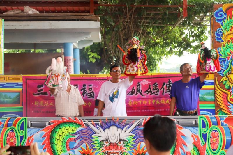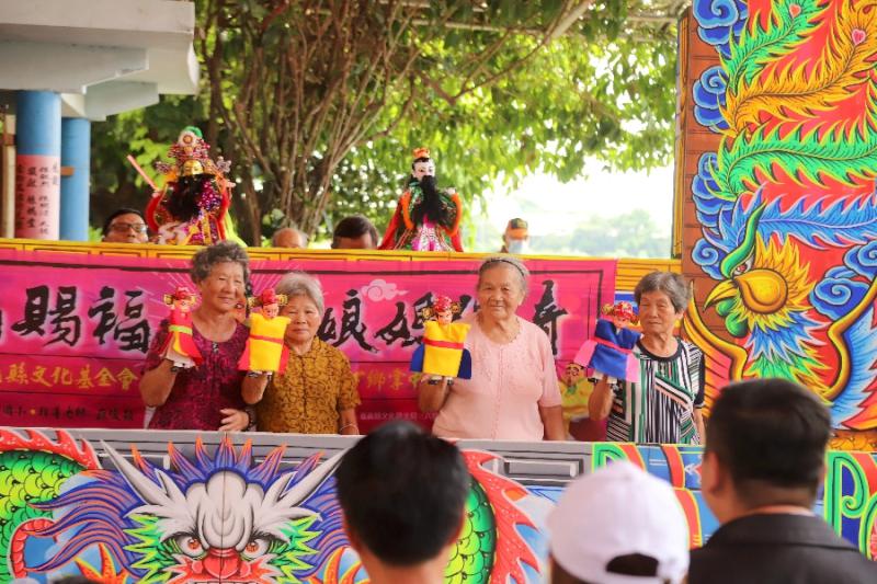 縣長翁章梁說,文基會下鄉不只搬演布袋戲,還包括歌仔戲、話劇、陶藝等形式,各種文化都圍繞在地故事、在地人的藝術創作,六腳娘媽堂充滿地方色彩與傳奇性,每年聖誕千秋300多棚布袋野台戲擺滿整條街,儼然是當地的信仰中心,今天看到地方老小也投入演出,實在很撼動人心。