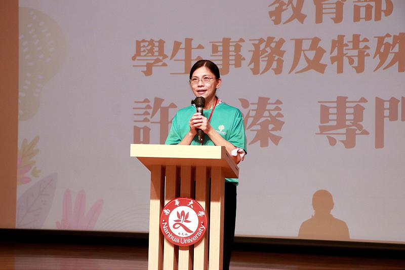 ►南華大學承辦大專生生命教育體驗營,教育部學生事務及特殊教育司專門委員許文溱致詞