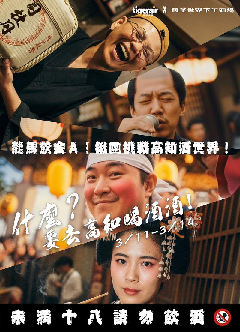 為帶領旅客深度感受日本高知的豪邁人情,**台灣虎航(Tigerair Taiwan)首度與「萬華世界下午酒場」**跨界合作,推出限量的「高知飲酒大挑戰」深度文化體驗團。這場被譽為「獻給酒鬼們的遠征」將於 3月11日至3月14日 出發,帶領熱愛飲酒文化的旅客殺進日本傳說中「最愛喝酒」的高知縣。