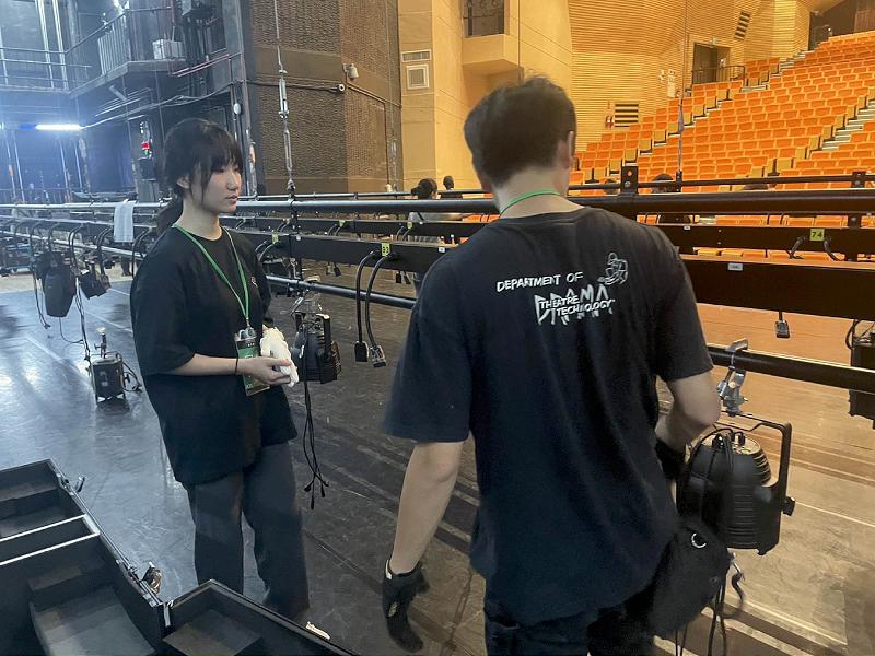 參與本次製作的大三學生程詠傑提到,這次經驗讓他深刻體會劇場現場的節奏與專業要求。在與業界老師及團隊合作的過程中,學習到許多教科書以外的實務知識。每一次技術排練、每一次溝通,都是難得的學習機會,也讓我對未來投入表演藝術產業更具信心。