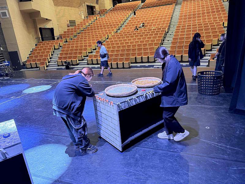 ►南華大學民音系攜手雲林愛樂產學共製音樂劇,展現學生實戰力,學生協助舞台道具場上定位。
