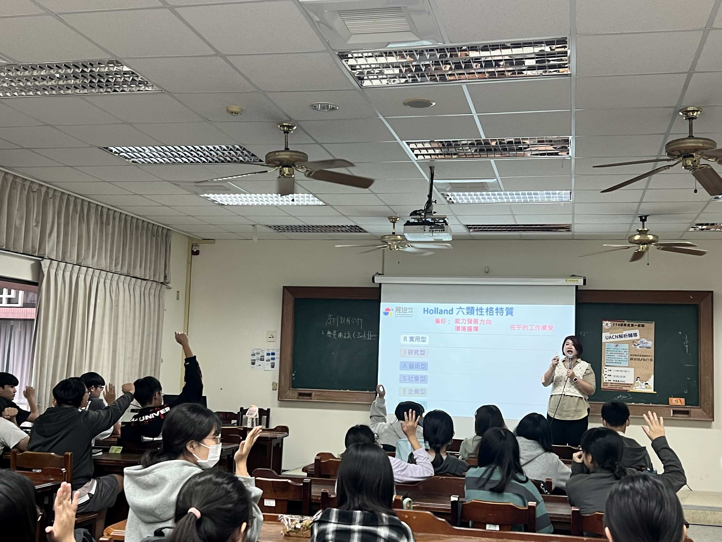 為協助學生更深入運用測驗結果,產職處針對不同系所辦理多場 UCAN 解析輔導講座。以「生涯金三角」(興趣、能力、機會)與「人境適配」為核心概念,引導學生理解自身特質如何與未來產業需求相互對位。例如財務金融學系、生死學系、幼兒教育學系、傳播學系、建築學系與資訊工程學系等皆以實務案例說明不同性格傾向適合的工作環境,也示範如何將 UCAN 的共通職能如溝通表達、團隊合作、問題解決與資訊科技應用,轉化為課內外可累積的「能力證據」。在幼教系場次中,講者更以「躺平文化」切入,指出未來幼教職涯不僅限於園所教學,也能延伸至家庭教育、親職活動或跨領域創意服務,鼓勵學生以自身特質開發多元化的生涯路徑。