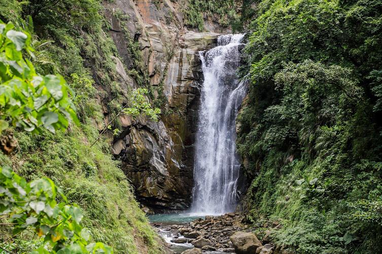 觀音瀑布位於竹崎鄉文峰村,瀑布四周群山環抱,其中主要瀑布共四座,位於步道頂端的瀑布最為壯觀,奔流懸於林間充滿氣勢,遊客可從不同角度欣賞瀑布,特定角度可見瀑布酷似觀音手持淨瓶柳枝,因此得觀音瀑布美名。