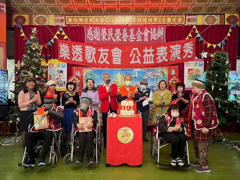 元宵節前夕,樂透歌友會蒞臨台南佳里榮家,一起與長輩歡慶元宵猜燈謎活動,讓長輩能夠感受到年節味道,本次活動邀請樂透歌友會與長輩歡唱多首歌曲及2月份慶生會,同時穿插猜燈謎活動,許多長輩都迫不及待在照服員陪同下推著輪椅或搭乘電動遊園車來到會場參加活動,會中本月壽星與榮家主任一起切蛋糕,和眾人分享壽星喜悅。