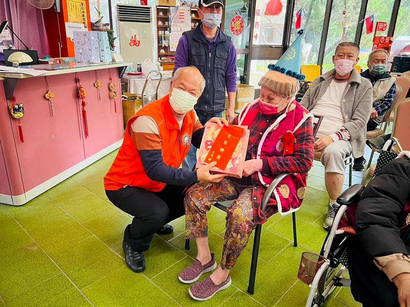 ►榮家主任白永成(左)致贈生日禮金及禮物