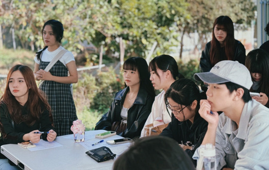 學生也藉由蒐整梓官的地理環境、人口結構與產業特色,理解北梓官作為台灣重要蔬菜供應地的角色;並運用田間實地訪談與觀察資料,結合生成式AI與語意分析流程進行文本分析。課程同時安排學生實際品嚐已開發的甜菜根麵點,以「體驗感受」對照紙本企劃內容的落差,進一步調整目標客群設定與價值主張,培養以數據、感知與場域觀察共同支撐決策的數位行銷素養,讓學生構想不僅停留在教室討論,而是能洞察地方問題,提出具體而可行的解方,促使創意回應場域、方案落地地方。