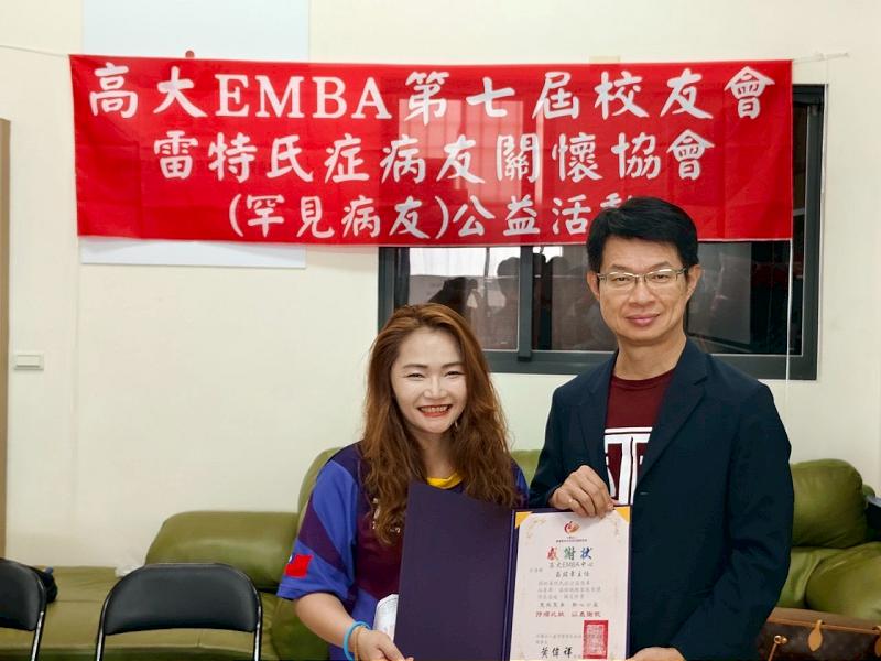 高雄大學EMBA中心主任翁銘章亦親自蒞臨捐贈儀式,表達對校友會行動的高度肯定。他表示:「EMBA教育的精神,在於培養具有社會使命感的管理者。校友會此次對雷特氏症的支持,不只是慈善活動,而是一種責任的實踐與延續。」