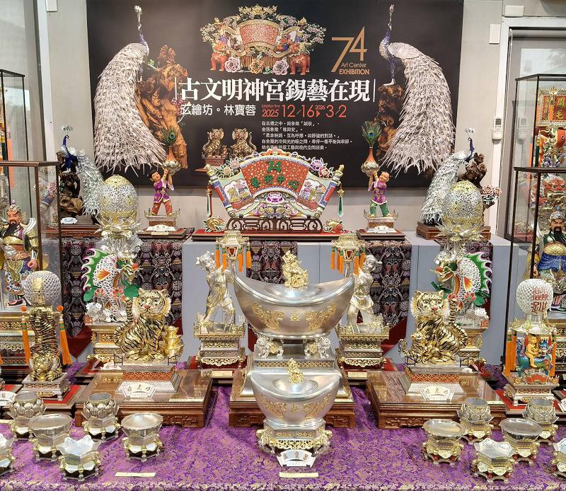 由錫藝創作者林寶蓉老師所呈現的本次展覽,結合東方供器工藝的歷史脈絡與現代空間語彙,透過器物形制、結構比例與光感配置的細膩安排,鋪陳出一場關於「光、靜、敬」的當代工藝展演。作品不僅回應傳統信仰中金屬所承載的敬意、供養與守護意涵,更進一步在當代語境中,重新思考工藝如何成為精神性的載體。