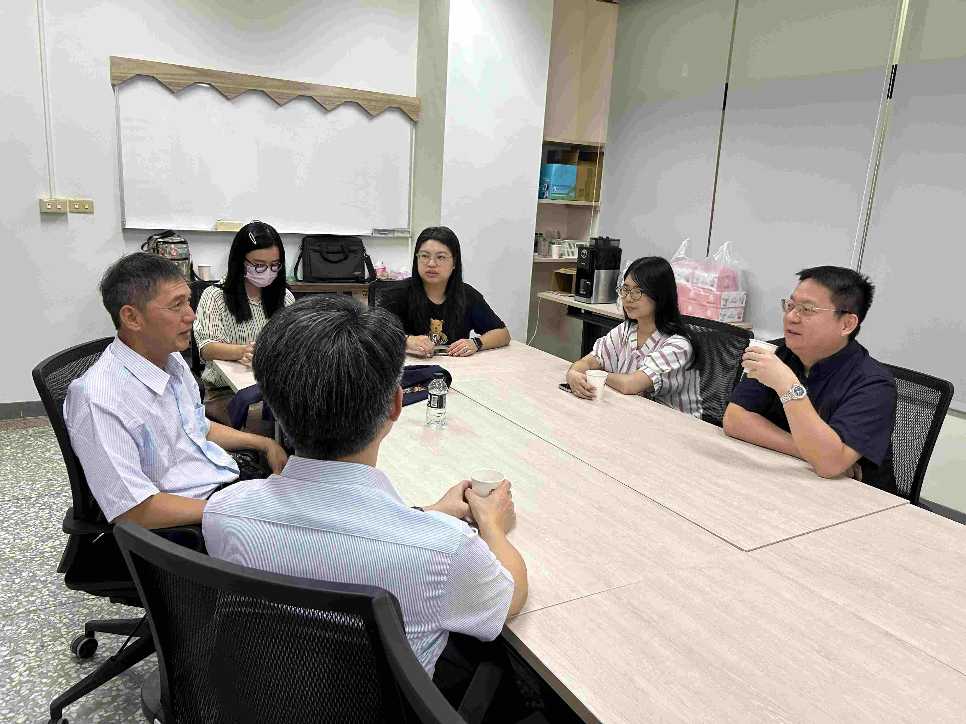 ►南華大學與億豐昌畜牧場簽署合作,陳柏青院長(右) 與億豐昌畜牧場的蘇翃緯負責人(左2)說明合作事宜。