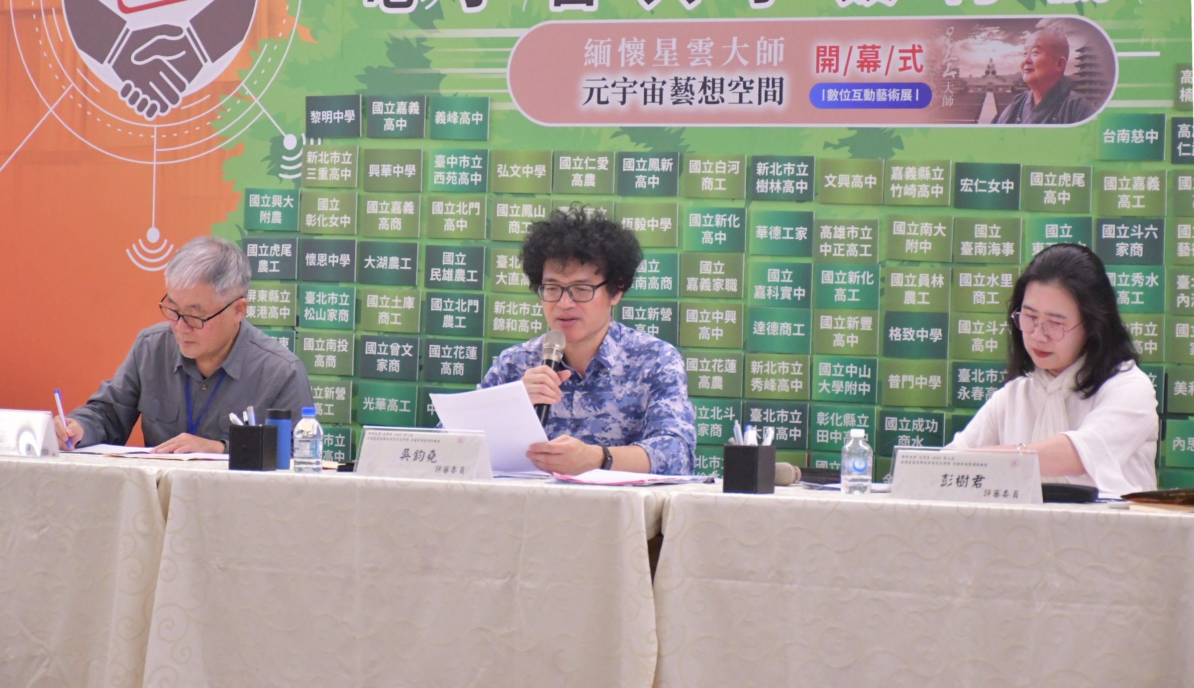►南華大學文學系舉辦第二屆「永懷星雲大師─生命書寫文學獎」決審會議暨頒獎典禮,大專組評審主席吳鈞堯講述總評。