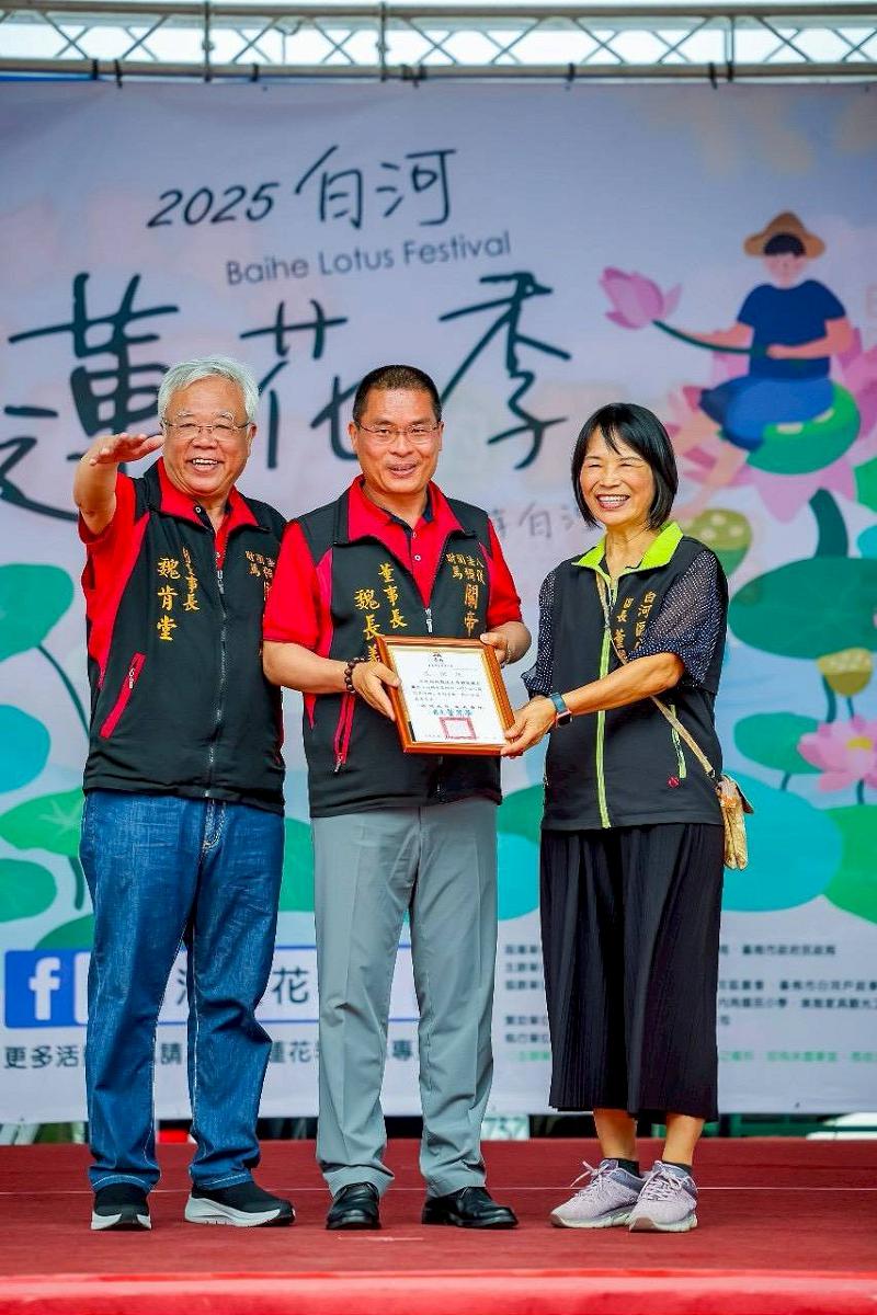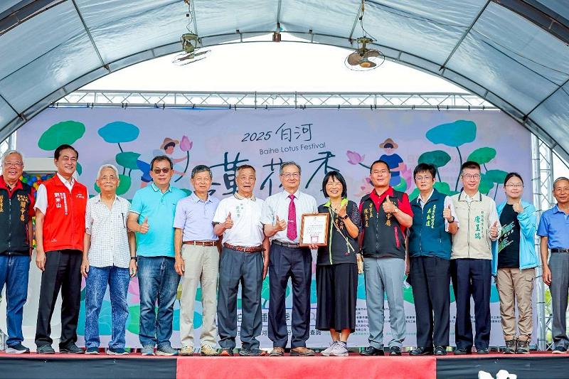 白河區公所於5月3日上午假馬稠後關帝廳舉辦「2025白河蓮花季開幕暨母親節表揚大會」,感謝偉大的母親一生為家庭、子女無怨無悔地犧牲奉獻。各里受表揚者偕同家屬來到會場,場面溫馨熱鬧。立法委員賴惠員、立法委員陳亭妃、行政院雲嘉南聯合服務中心執行長劉米山、議員趙昆原、議員李宗翰、議員沈家鳳、議員蔡育輝、議員王宣貿、臺南市政府農業局副局長吳威達、觀旅局簡任技正唐呈瑞、西拉雅國家風景區管理處秘書陳美靜、林俊憲立法委員團隊、白河區農會理事長包永松、白河區農會秘書吳崑鐘、白河區調解委員會主席蔡淑美團隊、白河區戶政事務所主任江小芳、白河區衛生所醫檢師鄭詠聰、財團法人臺南市私立沈黃雪娥社會福利慈善基金會榮譽董事長沈黃雪娥、台北市白河同鄉會理事長張賜、榮譽理事長林宗輝、榮譽理事長魏肯堂、常務理事黃明塏、馬稠後關帝廳董事長魏長義等長官貴賓及白河區各里里長、社區理事長、學校校長亦到場祝賀。