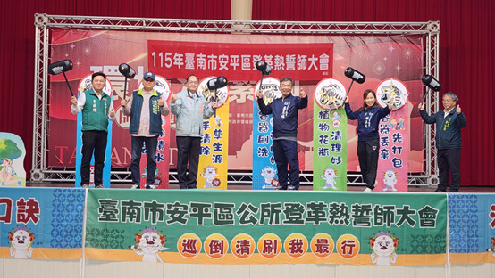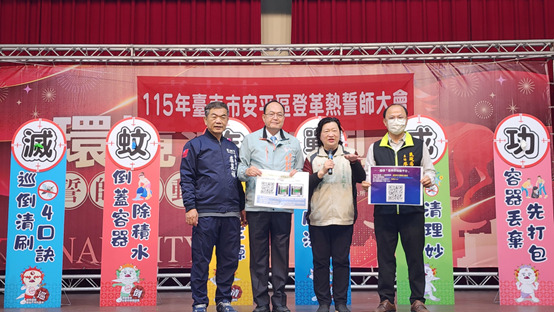 114年度本市發生3例本土登革熱確診個案,由於防範得宜,幸而未往社區擴散。惟鑑於全球氣候異常影響,為防止本(115)年登革熱疫情再次升溫,凝聚民眾抗疫的共識,台南市安平區公所於今(7)日配合國家環境清潔週辦理擴大孳生源清除登革熱防治誓師大會,宣誓安平區齊心防疫,打擊登革熱的決心。