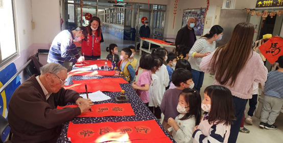 農曆春節將至,為迎接嶄新的一年,高雄榮譽國民之家特別舉辦新春揮毫活動,書法社的長輩們展現精湛功力,現場揮灑出一幅幅吉祥春聯,榮家附設職場教保中心的「小寶貝們」也開心共襄盛舉。稚嫩的小娃兒圍繞在爺爺奶奶身邊,不管是開心拿著毛筆書寫或是觀看爺爺揮毫,老幼共融的溫馨畫面,讓榮家洋溢著如家庭般的濃厚年味。