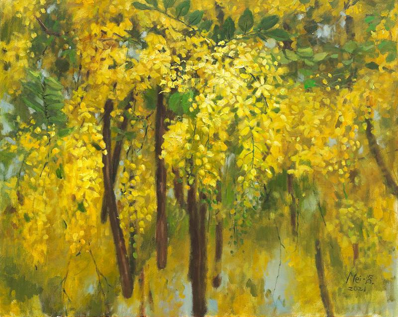 ►黃美賢博士作品《黃金雨阿勃勒》油畫。