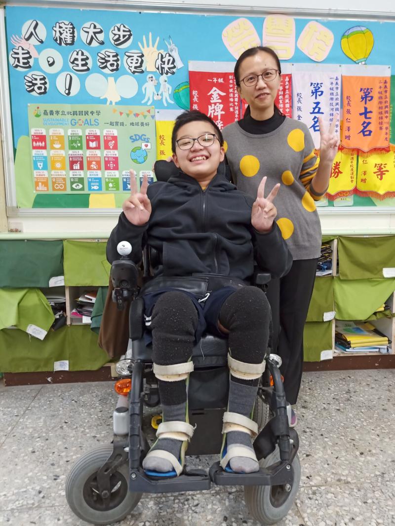 嘉義市北興國中三年九班學生吳冠庭回想這九年的學生生涯,最感謝的人是爸爸跟媽媽,自小便罹患「先天性肌肉萎縮」,上學日常就是由父母親從車上抱下,坐上他的專屬賓士(輪椅)開啟學習的每一天。冠庭也曾經埋怨過,「為什麼是我?為什麼我不能在球場上自由奔馳?我只是想當一個正常的學生而已,為什麼不行?」但因為母親從不放棄任何治療的機會,總是不遠千里帶他求醫,冠庭捨不得母親難過,開始學著樂觀看待自己的病情。