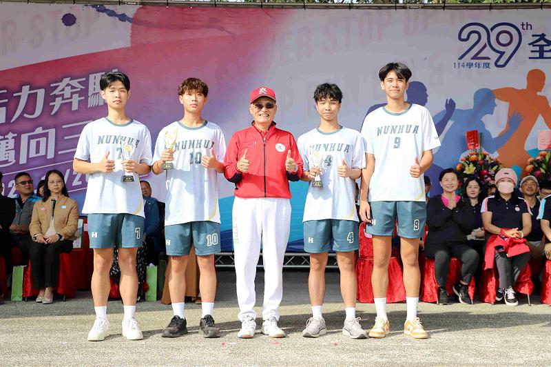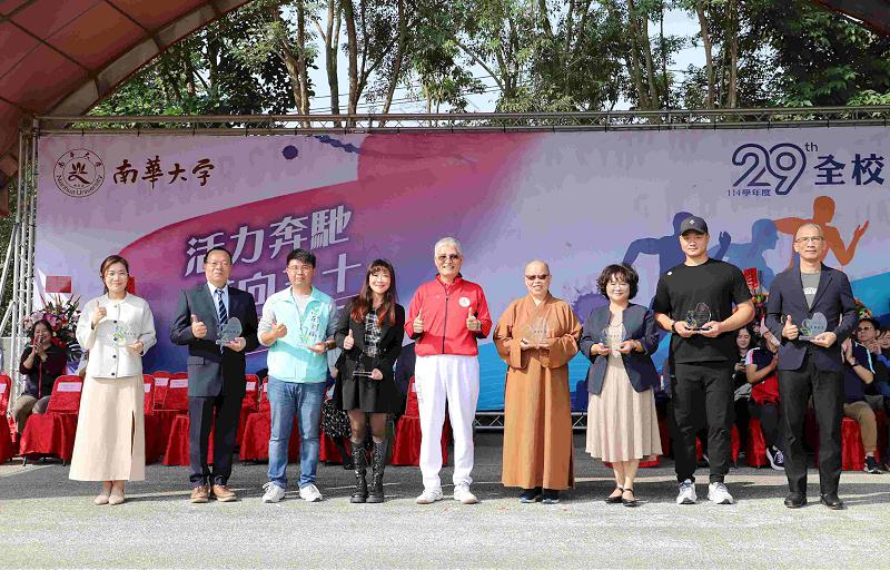 南華大學校長高俊雄表示,透過運動會舉辦各項體育賽事,可以讓大家鍛鍊健康的體魄、發揮團隊精神,使校園增添活力的氣氛。多年來秉持創辦人星雲大師「體育弘法」的理念,積極培養體育運動人才,並成立棒球隊、國武術隊、排球隊、籃球隊、藤球隊…等校隊,在各賽事表現皆相當亮眼且獲獎無數。尤其是棒球隊,歷年來培育多位選手成功投入中華職棒、企業甲組與旅外發展,成果斐然。此次獲頒「第十二屆傑出校友」的陳柏清正是現任的職棒選手,目前效力於台鋼雄鷹球團,去(113)年更代表中華隊參加12強賽,為國爭光。高俊雄校長更提到「正行中心」已全面升級,不僅是優質的多功能運動空間,同時也是符合全國正式賽事的場地,未來將可辦理多項體育賽事。