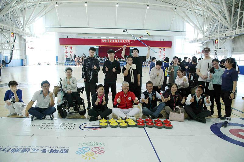 ►南華大學運動會舉辦「地板冰壺體驗賽」,師生展現「運動共享」的精神。
