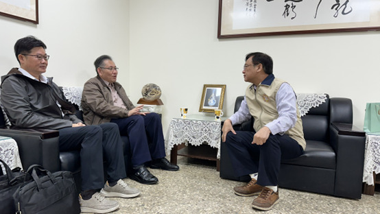 ►高瑞鍾處長(中)跟劉雅魁處長(右)討論產學、產訓未來合作方向