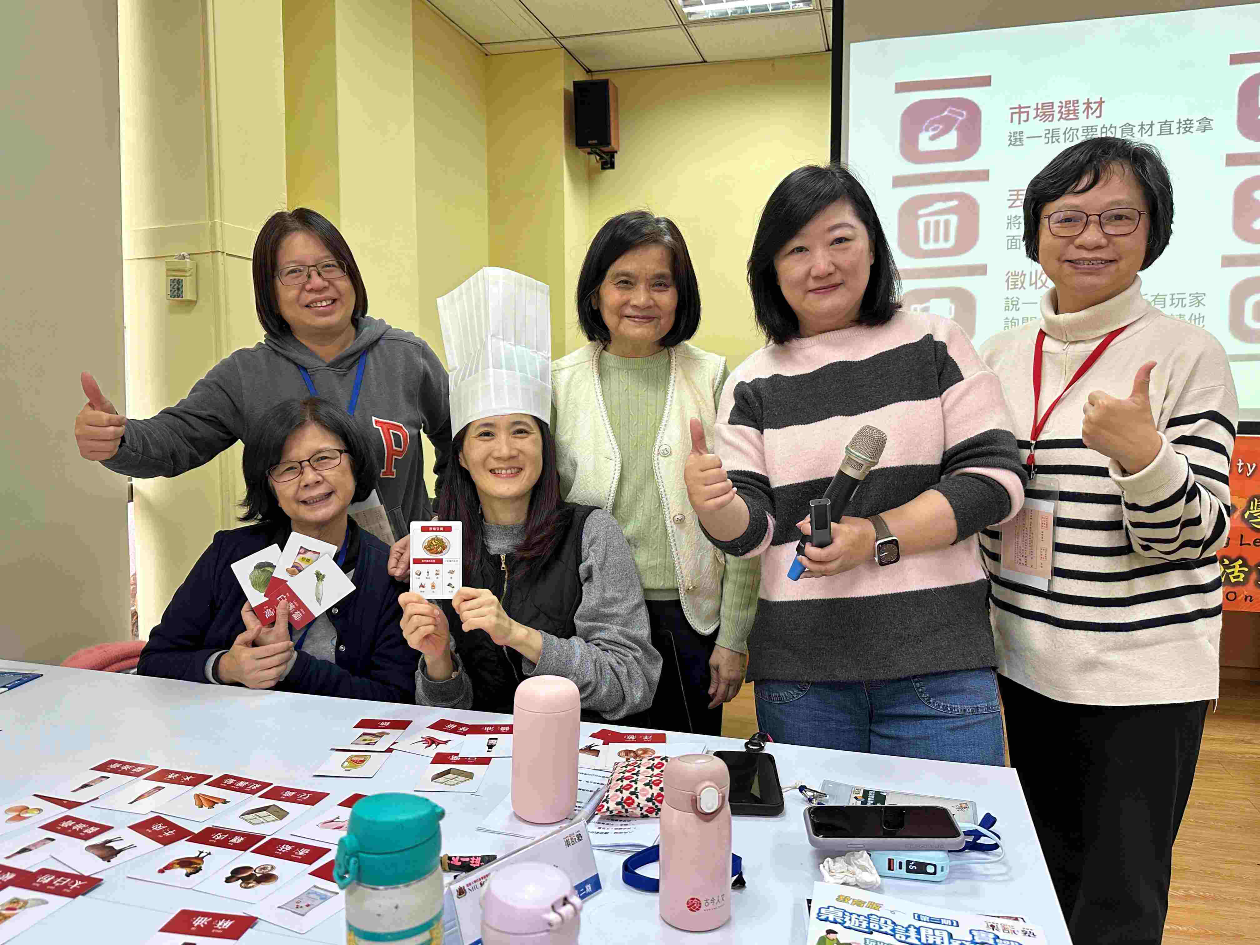 ►南華大學終身學院「教育版桌遊設計開發實戰班」第二期,程云美老師(右二)帶領學員分組進入實戰領域,指導學員從零到有開發出屬於自己的作品。
