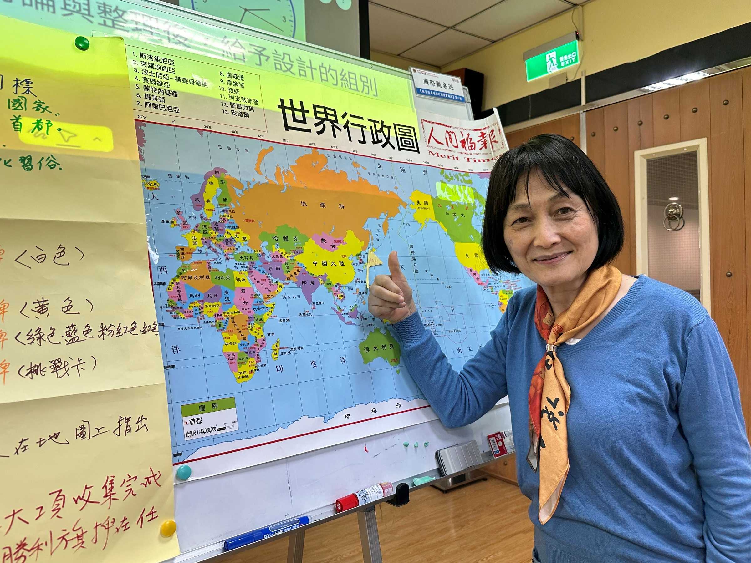 ► 南華大學終身學院「教育版桌遊設計開發實戰班」第二期,熱心招生的人間福報讀報教育中心主任劉秀勤,在國際觀組提供的桌遊試玩中取得第一名。