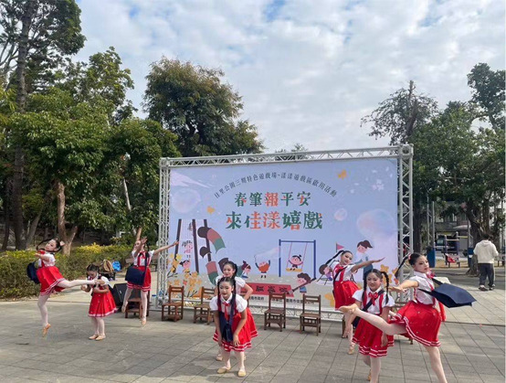 臺南市佳里區公所於今(1)日於佳里公園舉辦「佳里公園三期特色公園—漾漾遊戲區」啟用活動,姜淋煌副市長代表黃偉哲市長蒞臨現場,與佳里國小學童一同體驗全新遊戲場設施。活動結合防災小劇場及新春書法寫春聯等互動內容,展現市府推動文化融入公共建設、落實兒少遊戲權與全齡共融環境的用心。