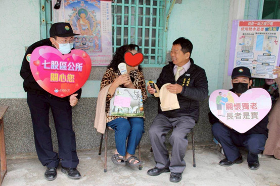 時值寒冬低溫來襲之際,台南市七股區公所啟動本區獨居長者關懷行動。今(7)日由區長李佳隆代表臺南市長黃偉哲,偕同公所團隊、各里里長及公所替代役男,親自前往探視轄內獨居長者,並致贈毛帽、圍巾、長襪、暖暖包、護手霜等禦寒物資,期盼為長輩們送上溫暖關懷與節令祝福。
