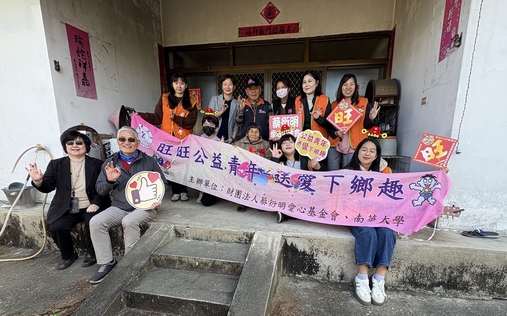 南華大學長期推動「三好運動」,落實「做好事、說好話、存好心」的教育理念,近年來更持續與蔡衍明愛心基金會合作,舉辦「公益青年送愛下鄉趣」活動,深入社區關懷弱勢族群。南華大學於1月8日再度攜手基金會辦理「2026春節歲末關懷活動」,由校長高俊雄率領師長與學生走入社區,為弱勢家庭送上溫暖與祝福。