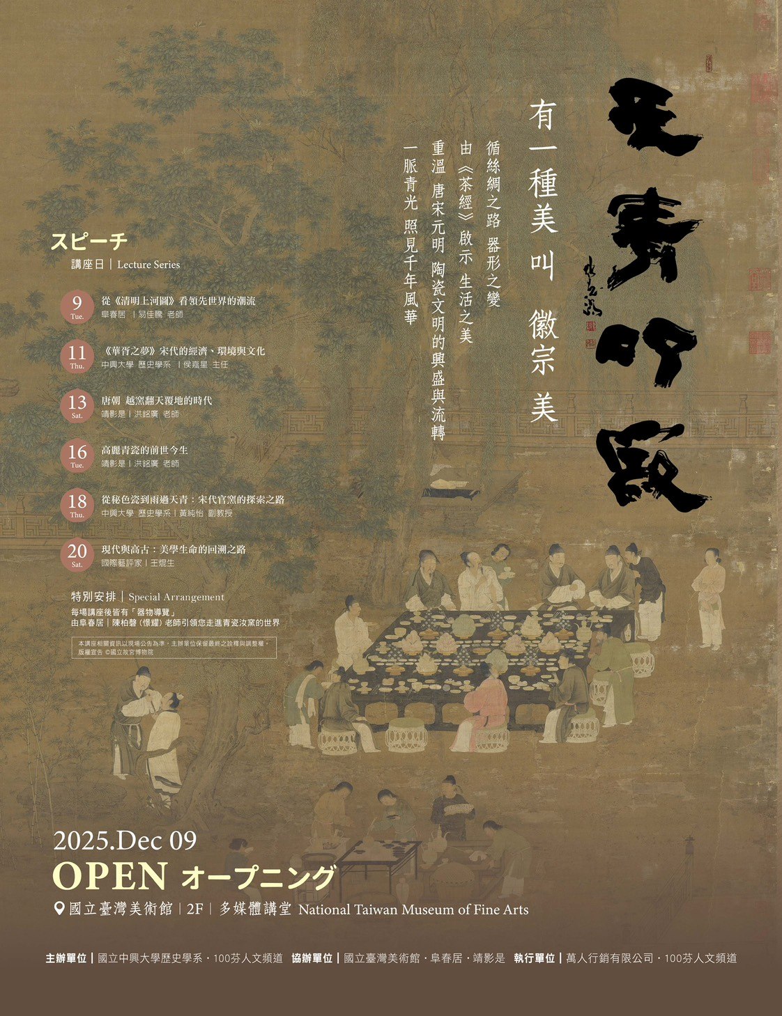 系列講座依唐、宋、元、明的歷史脈絡展開,聚焦北宋,內容橫跨城市生活、經濟制度、工藝技術、美學思想與跨文化交流。六場講座主題豐富,包括:從《清明上河圖》窺見汴京繁華;解讀宋代經濟與文化制度的「華胥之夢」;剖析絲路引入的波斯薩珊工藝如何催化陶瓷與金銀器的革新;探討越窯與高麗青瓷技術演進所展現的東亞陶藝連動;溯源秘色瓷與官窯體系下的天青釉皇家審美;以及從當代藝評視角,回望古典美學與現代生活的精神連結。