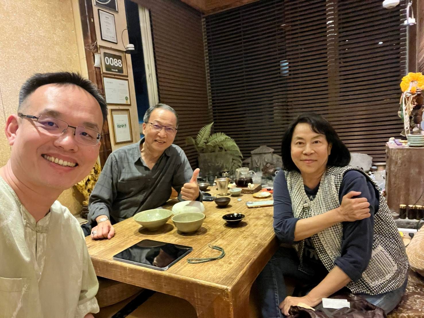 ►左起陳柏磬老師.記者蓋宇仁.華巍藝術總監賴慕芬於阜春居合影