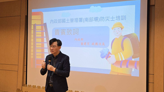 內政部今(6)日偕同高雄市政府在慈濟基金會高雄靜思堂舉辦為期二天的公寓大廈防災士培訓課程(南部場)。內政部次長董建宏表示,為落實「全社會防衛韌性」理念,內政部擴大將社區、各行各業納入防災士培訓對象,以逐步提升全民防災意識。