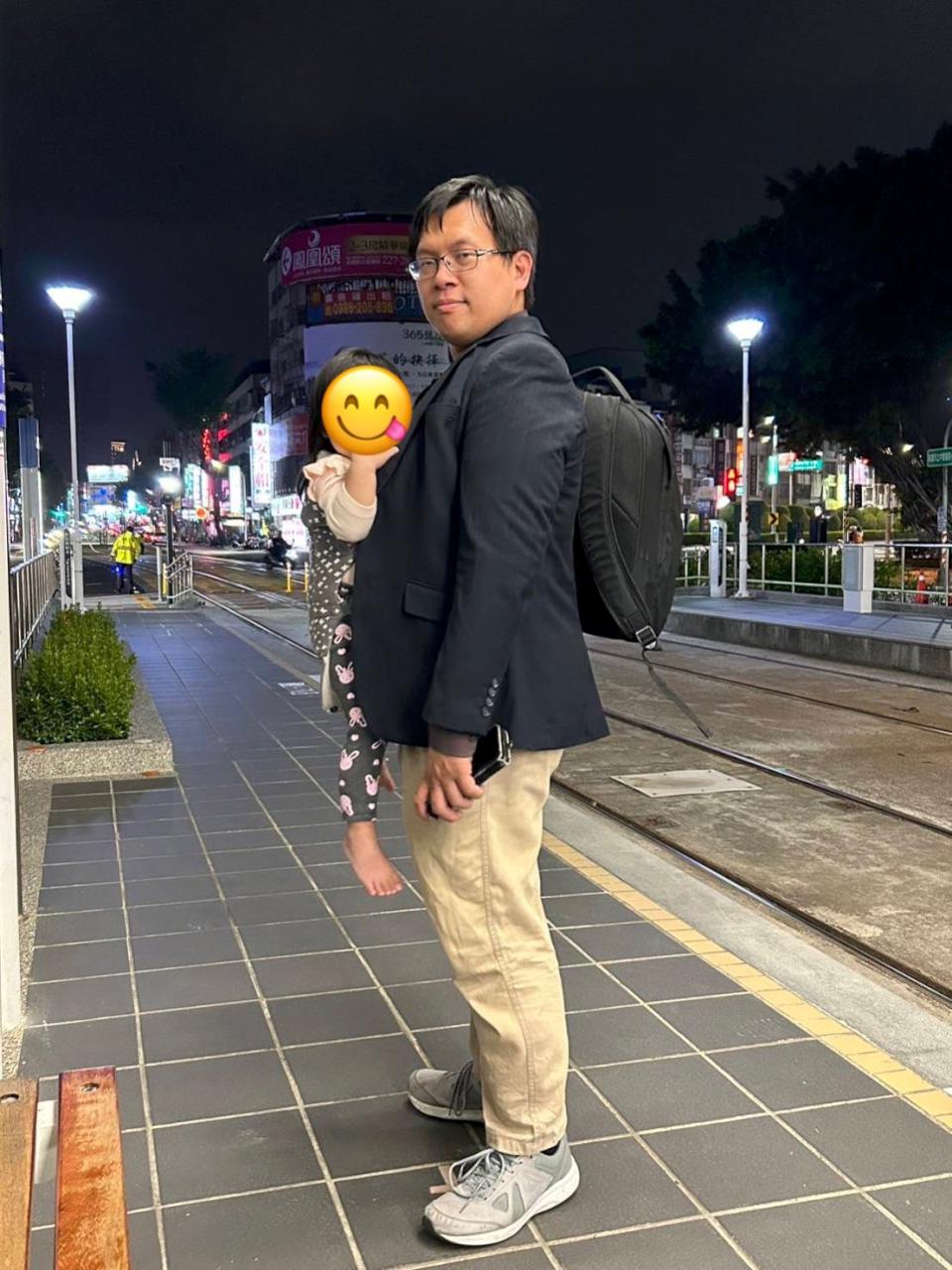 (圖二)身為三寶爸,假日北上出差時須帶著一個孩子來緩解家庭照顧壓力。