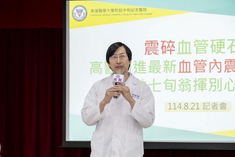 台灣已邁入超高齡社會,隨著年齡增長血管老化、動脈硬化風險也隨之增加,心血管疾病(CVD)當中,ASCVD 約佔 79%,整體 CVD 盛行率約為 7.7%,和亞太地區國家相當(如中國 7.8%、日本 8.9%),尤以65 歲以上族群增長最快,導致失能與醫療支出飆升。高雄一名70多歲的蔡先生,因多年糖尿病併發症導致血管壁逐漸鈣化,堅硬如大理石,讓他不僅飽受心絞痛折磨,還面臨心肌梗塞的高風險,嚴重影響生活品質。蔡先生前往高雄醫學大學附設中和紀念醫院(以下簡稱高醫)求診,經心導管檢查發現血管有嚴重的環狀厚重鈣化,儘管接受兩次「鑽石旋磨術」治療,仍無法有效打通血管以放置支架;原本需使用冠狀動脈繞道手術進一步治療,但因開胸手術風險較高,讓蔡先生一直遲疑不願意接受開刀治療。所幸,高醫團隊引進最新「血管內震波碎石術」(Intravascular Lithotripsy, IVL)震碎深層鈣化組織,蔡先生的血管才能完全擴張順利裝上血管支架,術後恢復良好也無併發症,隔日即可返家休養,成功化解長期困擾他的心痛危機。