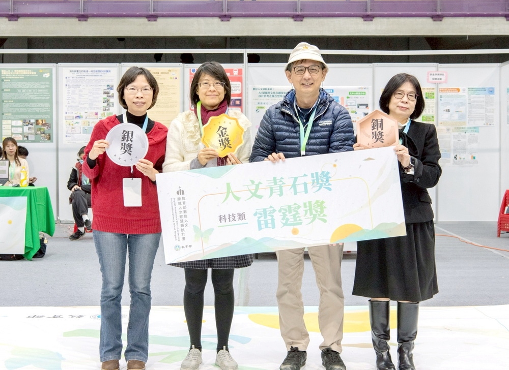 教育部「數位人文跨域人才智慧領航計畫」1月12日在中央大學舉辦分享會,同時頒發「2025教育部數位人文青石獎」。嘉義大學李佩倫副教務長主持之「數位跨域嘉義巡禮 再現諸羅人文風華」計畫,展現教研實踐卓越成果,勇奪教研獎「人文類--雲澤獎」金獎、「人文類--文心獎」金獎、「科技類--雷霆獎」銀獎及學研獎「教育類--凌霄獎」銀獎,另有3位同學獲選「優秀青年學者」,展現嘉大跨域教學實力。