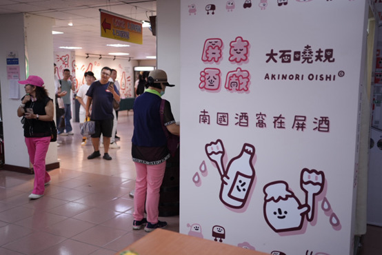 活動中,屏東酒廠產品推廣中心入口設有大石曉規親自設計的彩繪牆,吸引許多遊客駐足拍照;同時推出的 笑臉人物拍貼機 也成為打卡焦點,民眾紛紛留下獨一無二的紀念照,感受酒香與藝術交織的快樂氛圍。