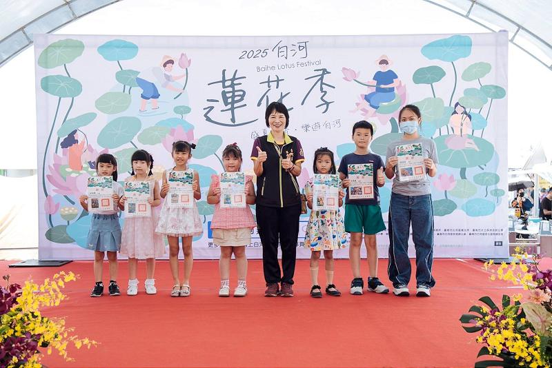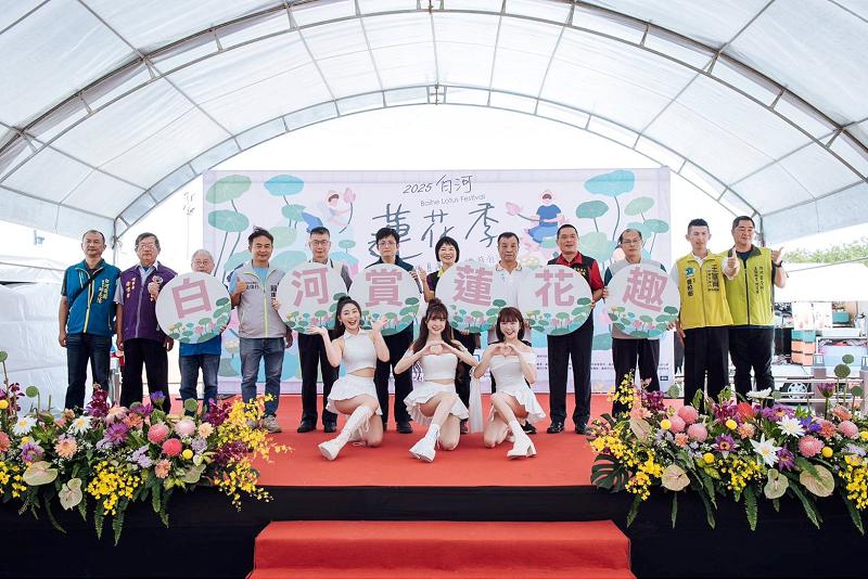 臺南市白河區公所於今(14)日在馬稠後關帝廳舉辦2025白河蓮花季「盛夏蓮香.樂遊白河」系列活動,吸引來自各地上千名民眾熱情參與。由臺南市政府農業局副局長吳威達代表市長出席本次活動。活動當日特別邀請啦啦隊女神孟潔、mika、小雞進行熱情的開場演出,現場氣氛High翻天!本日出席貴賓包括議員趙昆原、立法委員賴惠員服務團隊、立法委員林俊憲服務團隊、立法委員陳亭妃服務團隊、議員沈家鳳服務團隊、議員王宣貿服務團隊、議員李宗翰服務團隊、議員蔡育輝服務團隊、交通部觀光署西拉雅國家風景區管理處秘書陳美靜、臺南市政府農業局農務科科長許文耀、臺南市政府農業局農會輔導及休閒科股長劉怡呈、臺南市政府觀光旅遊局簡任技正唐呈瑞、財團法人馬稠後關帝廳董事長魏長義、臺北市白河同鄉會理事長張賜團隊、白河農會秘書吳崑鐘、臺南市白河戶政事務所主任江小芳、竹門國小校長簡辰全、內角國小校長黃明漢、河東國小校長賀國綱、白河區各里里長以及各社區協會理事長等貴賓共同啟動典禮,現場氣氛溫馨又熱烈,邀請大小朋友一同暢遊白河,感受蓮鄉的魅力。本日也舉行了「盛夏蓮香·印象關帝」戶外寫生繪畫比賽頒獎典禮,並於活動現場展出得獎者作品,現場掌聲不斷,民眾熱情響應。
