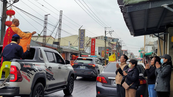►佛光山的法師分三條路線,深入光復鄉各村落,沿途灑淨祝福,將平安與祝願送進社區角落。(圖/佛光山)